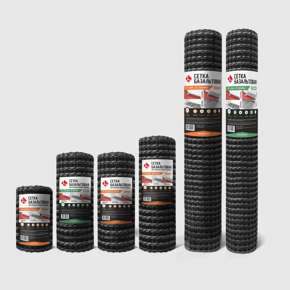 Область применения базальтовой сетки LIHTAR 50кН/м: -для армирования горизонтальных швов кладки; -для повышения несущей способности стен из газосиликатных и керамзитобетонных блоков; -для пустотелого и полнотелого кирпича; -для соединения облицовочного слоя стены из кирпича с основной стеной здания; -для армирования стяжки пола и штукатурного слоя стен. Характеристики базальтовой сетки LIHTAR 50кН/м: высокая устойчивость на разрыв - 50 кН; не боится щелочи; легко режется ножницами и проста в монтаже;